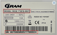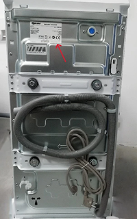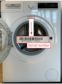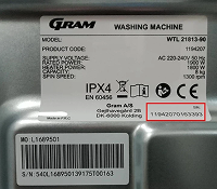 Typeskiltet på en GRAM vaskemaskin er plassert på baksiden av produktet. På baksiden av produktet finnes både modell og serienummer, på forsiden av produktet finnes kun serienummer. Når du finner typeskiltet, skal du se etter modell og serienummer.